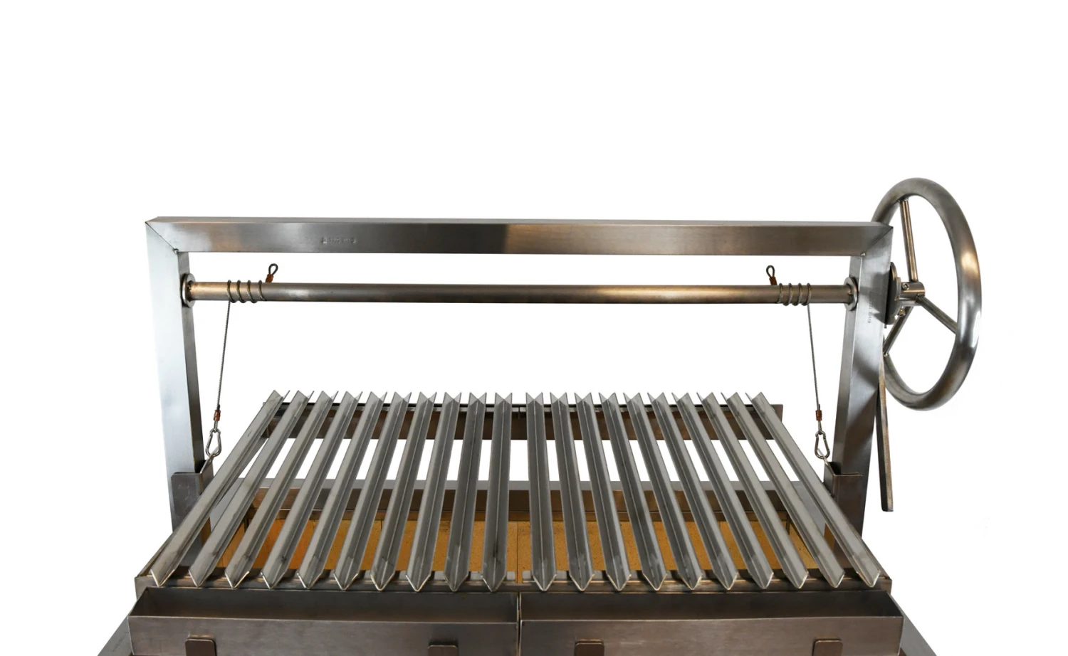 El interior de la Barbacoa Argentina está incrustado con ladrillos refractarios de alta calidad. Los ladrillos producen una excelente radiación de calor para una cocción continua. También evitan que el cuerpo de acero se degrade por el calor extremo de la llama desnuda.