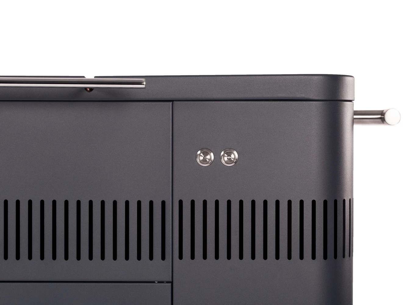 – 2 parrillas cromadas con mangos frontales fríos al tacto.