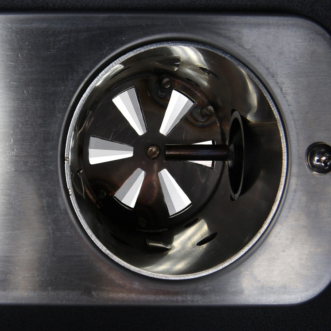 – Chimenea de gran diámetro con válvula de ventilación Roto-Draft: Válvula totalmente ajustable fabricada en aluminio fundido de alta resistencia. Permite una cocción precisa mediante el control del flujo del aire a través de la cámara de cocción.
