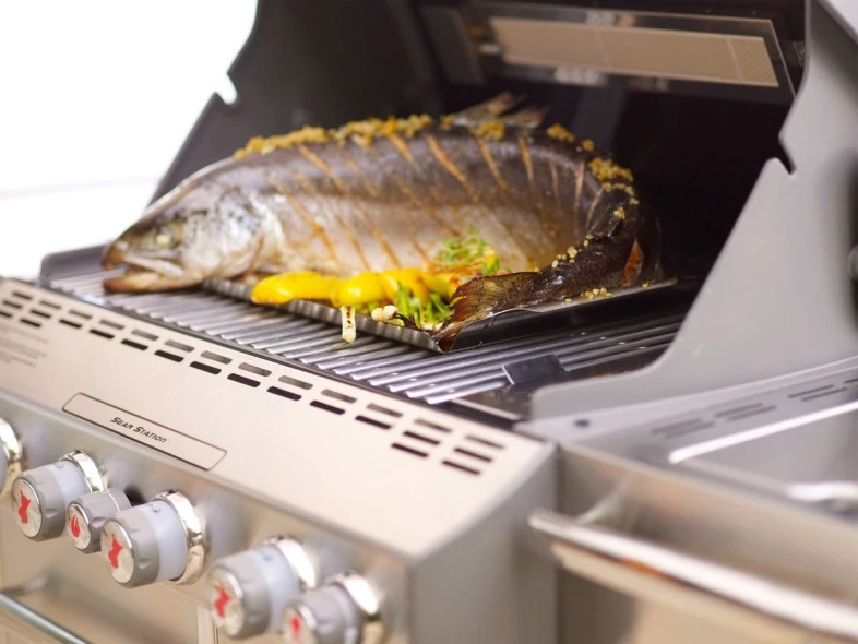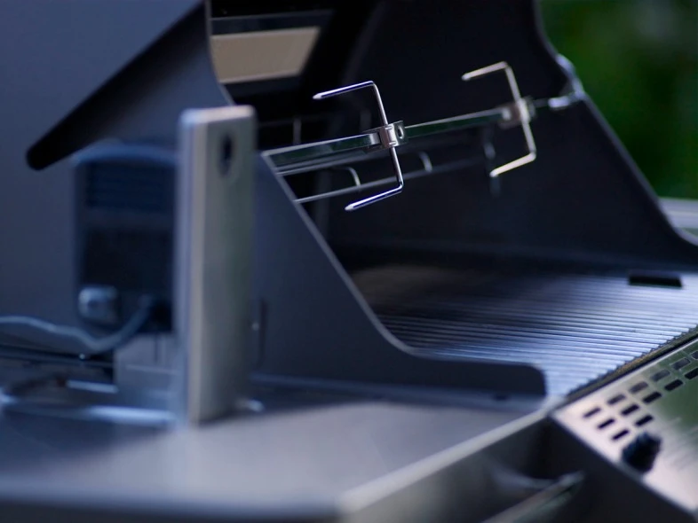 Incluye un rustidor motorizado encastrable, un quemador infrarrojo y una caja ahumadora, para darle un mejor sabor a los alimentos y cocinar de una manera más creativa. Esta serie de barbacoas, tienen luces en el panel de mandos y una lámpara en el asa, para cocinar más cómodamente por la noche.