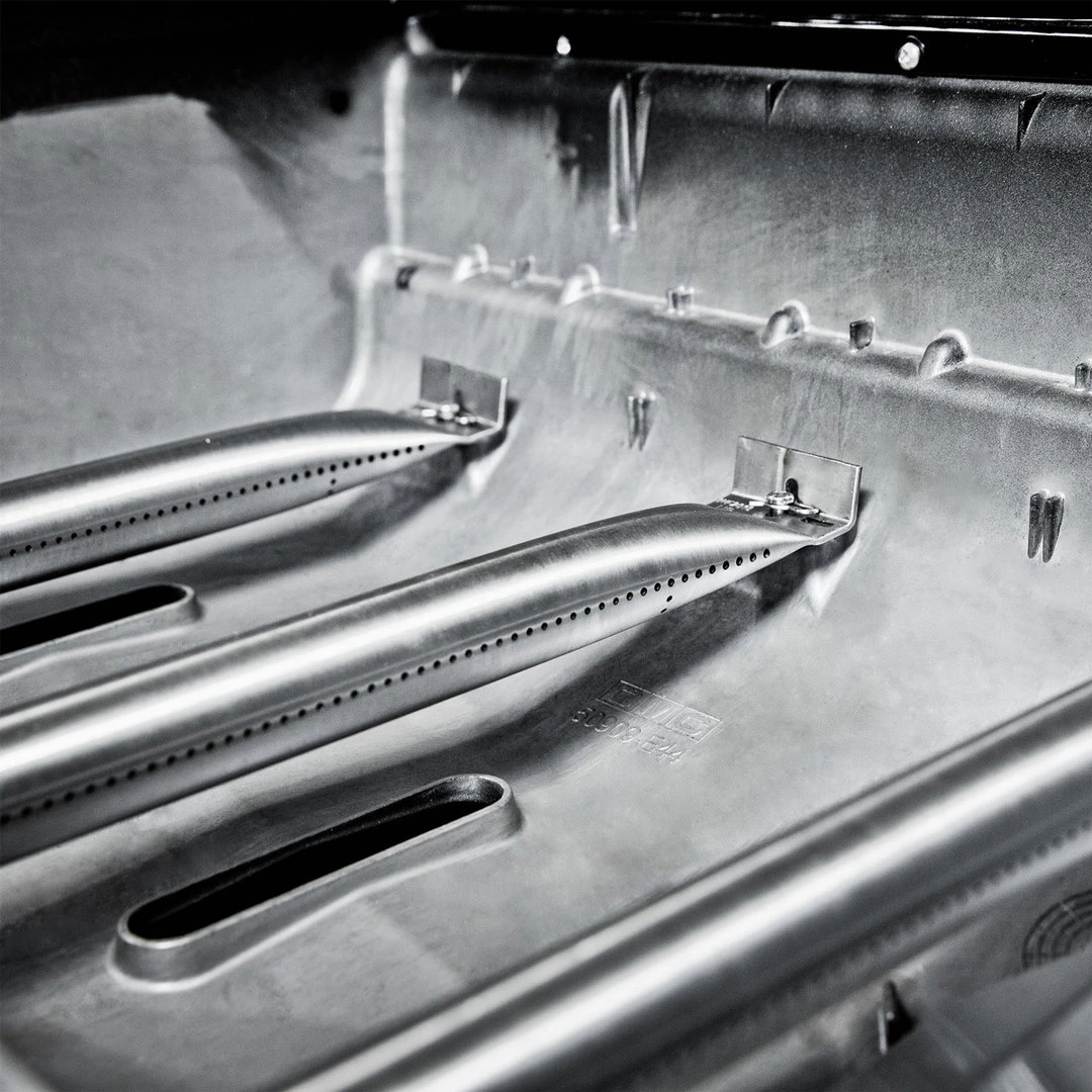 – Dual-tube™ Estos quemadores fabricados en Acero Inoxidable están diseñados para garantizarnos una llama pareja en toda la parrilla y tienen una garantía de 10 años.