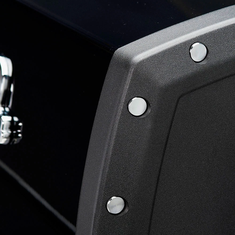 – Tapa de acero recubierto de porcelana con terminales de aluminio fundido y con elegantes remaches.