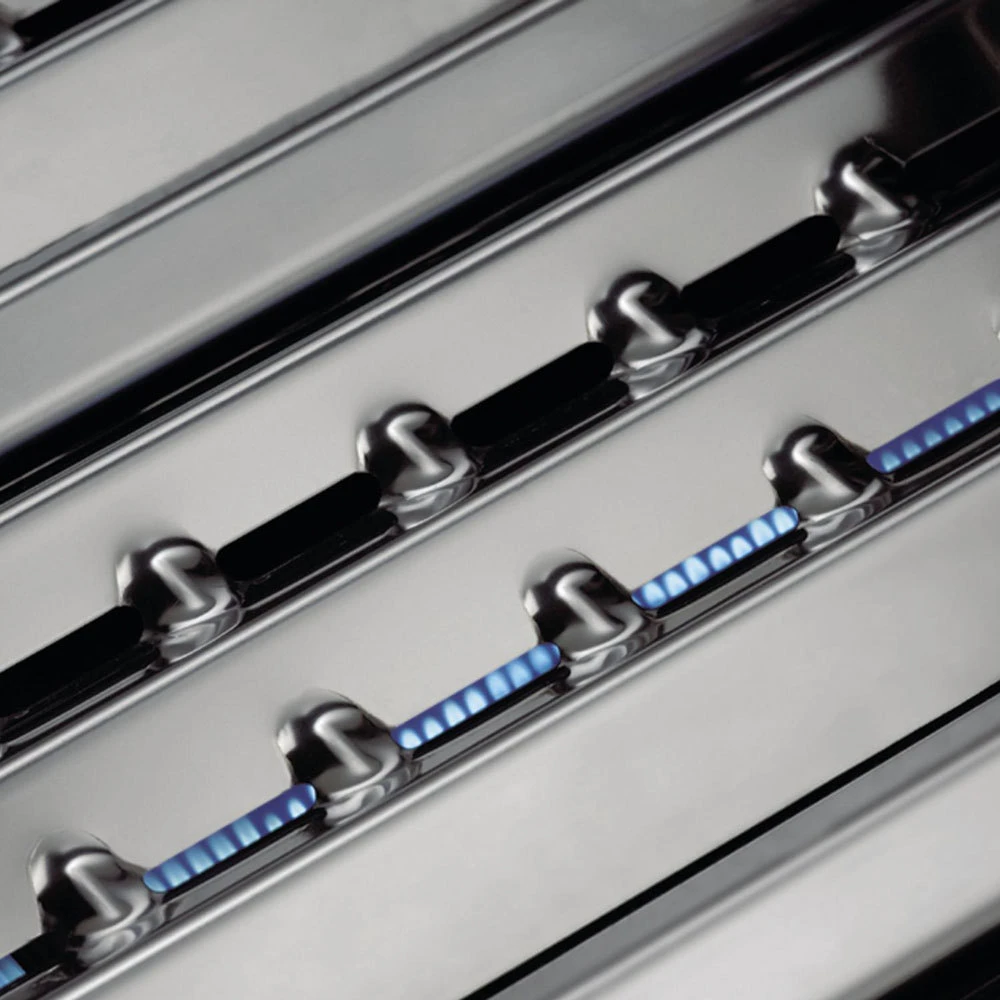 – Dual-tube™ Estos quemadores fabricados en Acero Inoxidable están diseñados para garantizarnos una llama pareja en toda la parrilla y tienen una garantía de 10 años.