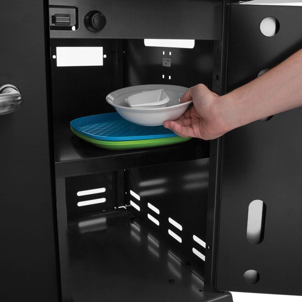 – Colgadores para herramientas y 2 estantes para condimentos.