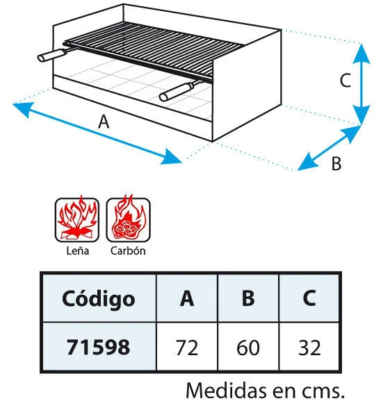 – Combustible recomendado: Leña, Carbón y Briquetas.