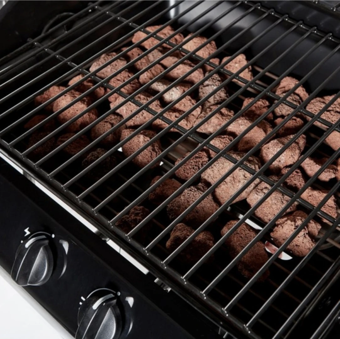 La barbacoa de gas Omega 200 es una barbacoa práctica, fácil de mover y su relación calidad precio inmejorable. Viene con roca volcánica incluída.