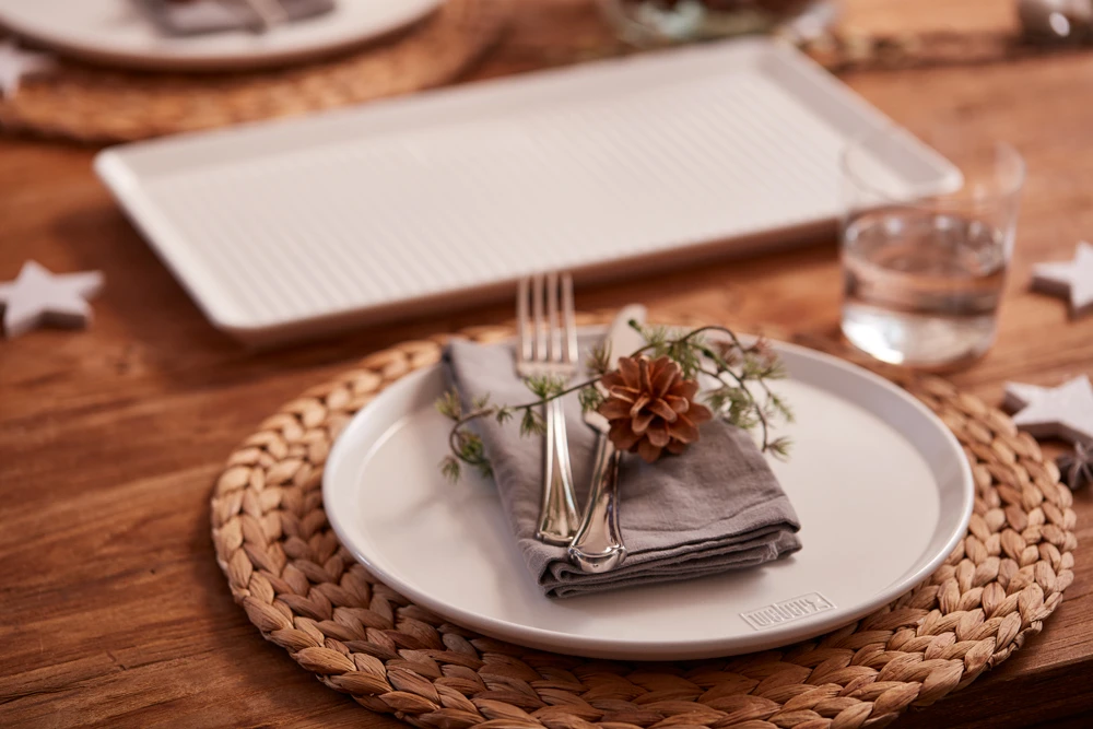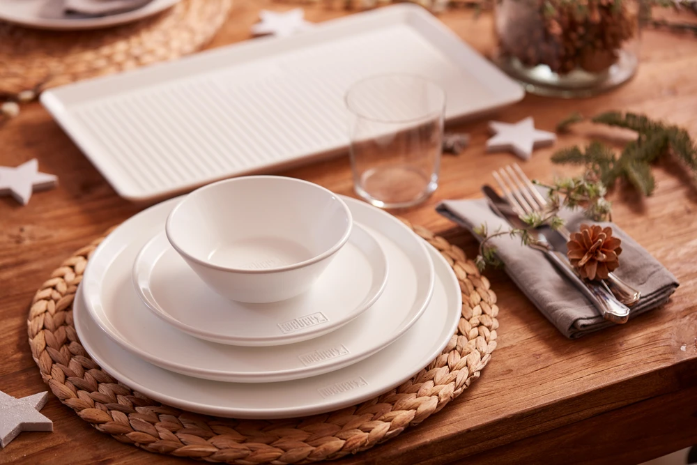 El menaje de mesa Weber se fabrica en Alemania: símbolo de calidad y durabilidad en todo el mundo. La porcelana dura se cuece a una temperatura superior a 1420 °C, lo que le aporta extraordinarias características, como una gran capacidad para retener el calor y una excelente protección contra los arañazos.