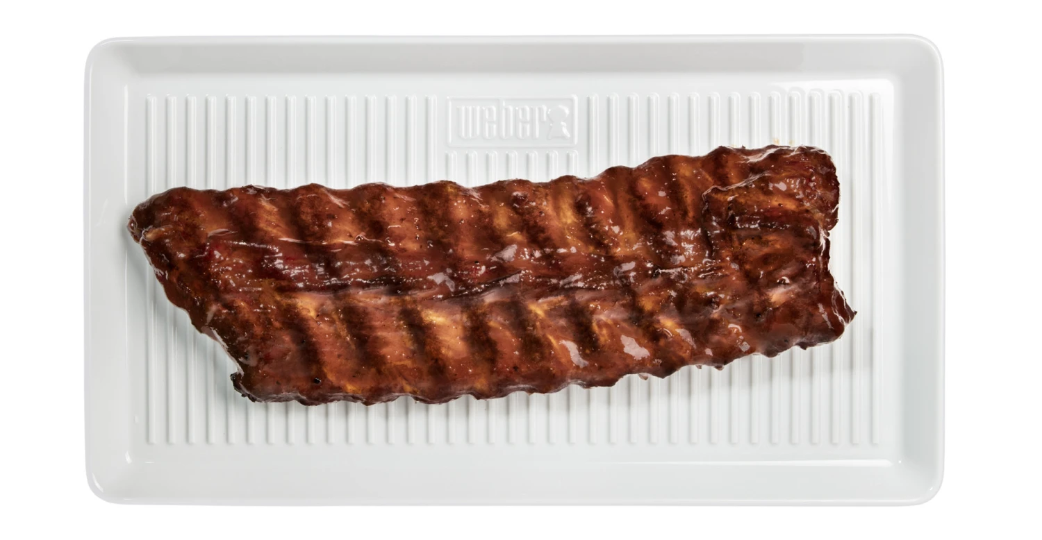 Completa la mesa y tu cena con esta impresionante bandeja para servir Weber. Fabricada en porcelana dura, caracterizada por su gran resistencia, y diseñada para retener el calor, la bandeja, de 40 cm. x 22 cm. es la mejor elección para servir de todo: desde un sencillo pollo hasta suculentos cortes de carne o verduras.
